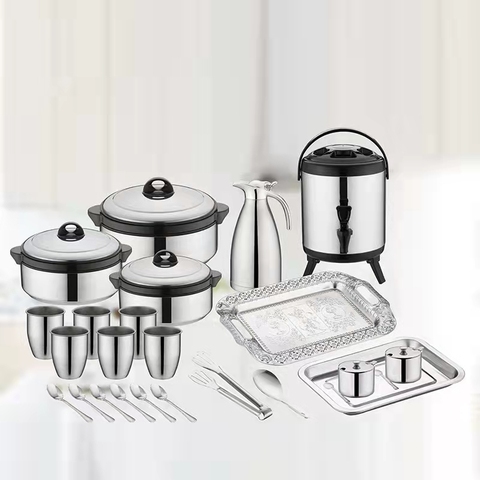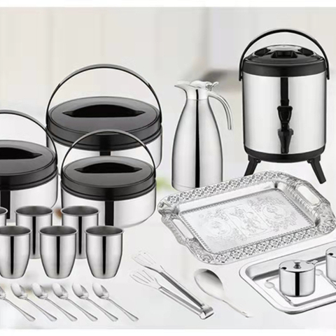 Juego familiar de tetera de acero inoxidable, barril de aislamiento fresco, para café, leche y té, 25 uds.