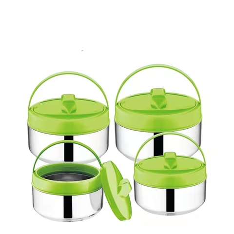 Juego de olla de acero inoxidable para mantenimiento fresco, Juego de 3 y 4 unidades, gran capacidad, cubo aislado con mango, fiambrera Doble